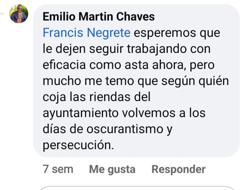 Imagen 2: Comentario de Emilio Martín Chaves en un artículo de Francis Negrete en AZAGALA, tras la marcha de Jesús Martín del grupo socialista.
