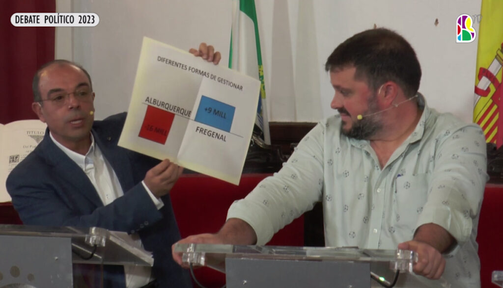 El más combativo fue Luis Paniagua, asesorado por Víctor Píriz, que asistió al debate. Fue especialmente duro cuando dijo: “el PSOE ha sido una ruina para este pueblo; todo lo que ha pasado lleva su sello; la ingente deuda y el impago a los trabajadores se hizo con la gestión del partido socialista”. Y añadió: “podemos esconderlo ahora bajo un grupo de gente diferente, pero cuando viene aquí algún cargo del partido vemos su verdadera cara y volvemos a escuchar las mismas amenazas de siempre”, en referencia al portavoz del PSOE en la Asamblea de Extremadura, cuando dijo que solo votando a este partido Alburquerque tendrá futuro. “No sabemos si el nuevo PSOE es un ORPO de garrafón, o es sencillamente una versión descafeinada”, añadió Paniagua, quien resumió la gestión del PSOE en Alburquerque en tres palabras: deuda, pobreza y abandono. Pidió además la intervención del Tribunal de Cuentas para que se investigue toda la gestión de estos años y se deriven responsabilidades judiciales, culpando al PSOE y a IPAL de no haber hecho caso a su partido cuando ha exigido esta intervención.