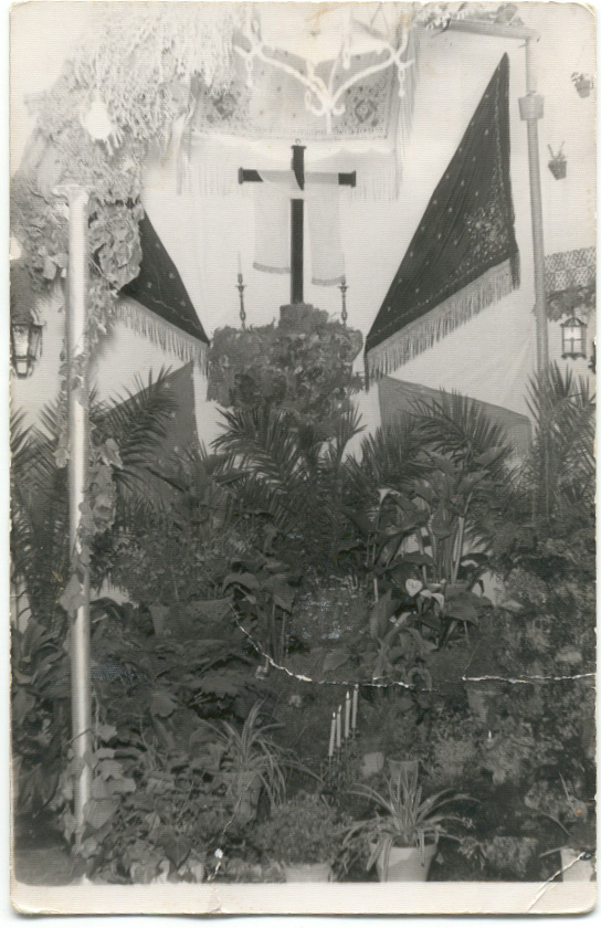 Fotografía 2. Tan viejo como el portal que la representa -quizá si cabe mucho más antigua- son las cruces de mayo, fiesta que con regocijo se celebraban en las casas particulares de la villa, como símbolo de la alegría de un pueblo por la resurrección de Cristo (E. López, 1985).