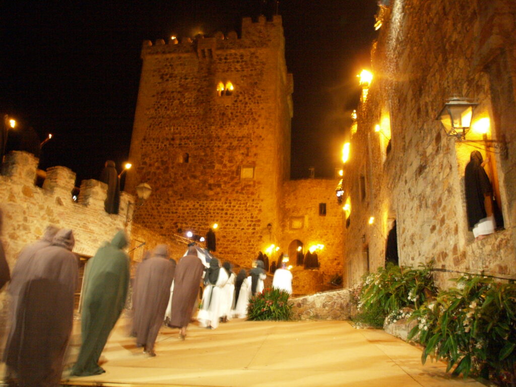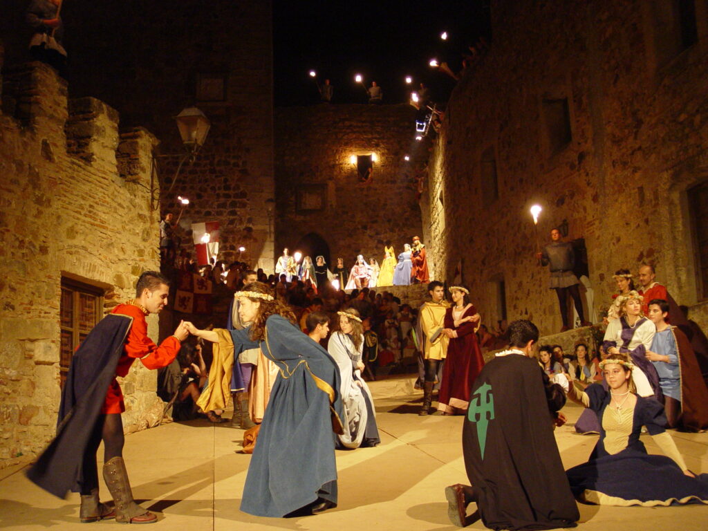 En el fin de semana anterior tenía lugar la representación de una obra teatral en el castillo, ambientada en la época. Durante años, con gran éxito, se pusieron en escena «El águila blanca«, del autor extremeño don Miguel Murillo, basado en una supuesta leyenda sobre don Alvaro de Luna, Conde de Alburquerque, y Cuello de Garza, escrita expresamente para esta fiesta por el mismo autor, basándose en la vida, vicisitudes y muerte de doña Inés de Castro, amante de don Pedro, hijo del rey de Portugal Alfonso IV.