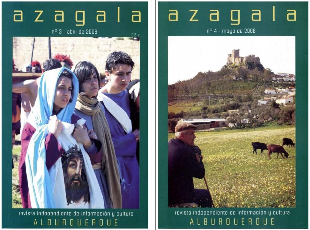 Como no podía ser de otro modo, el castillo de Azagala fue portada del primer número. No tendría sentido elegir otra imagen cuando, Francis y yo, después de darle vueltas al nombre de la revista, acudimos a esta fortaleza tan ligada a Alburquerque como referente de la revista. Ahora todos sabemos que está siendo restaurada para convertirse en un hospedaje de lujo y que puede ser un elemento que sirva para el impulso turístico del pueblo.