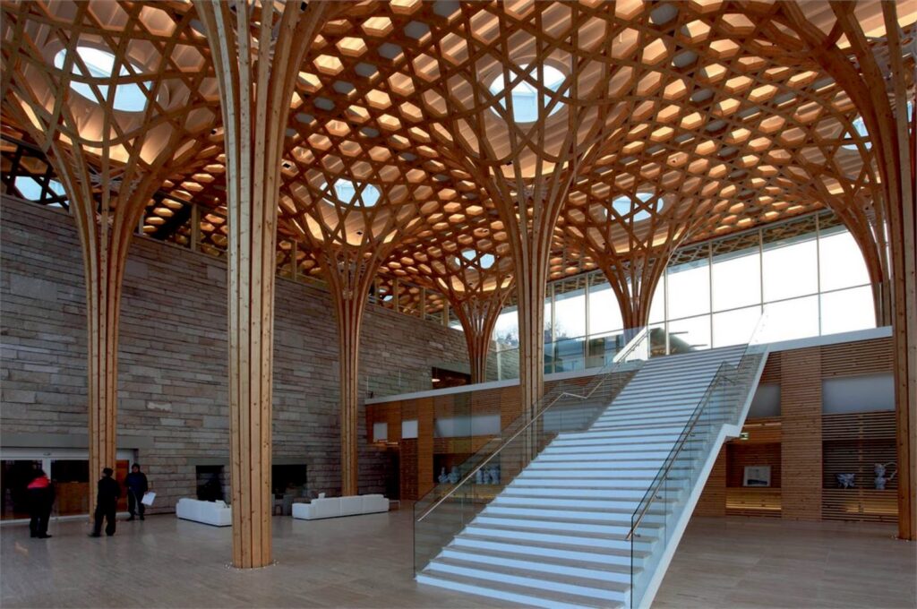 Este sorprendente edificio se ha convertido, a partir de su terminación en 2010, en la institución cultural más visitada de Francia fuera de París. La razón de su fama se encuentra en su singularidad, pues es una gran nave de 5.000 metros cuadrados de planta hexagonal, que además contiene tres galerías superpuestas y entrecruzadas, junto con un teatro y un auditorio. Lo que más le llama la atención es la cubierta ondulada blanca, que Shigeru Ban proyectó a partir de la sugerencia que le ofreció la forma de un sombrero chino.