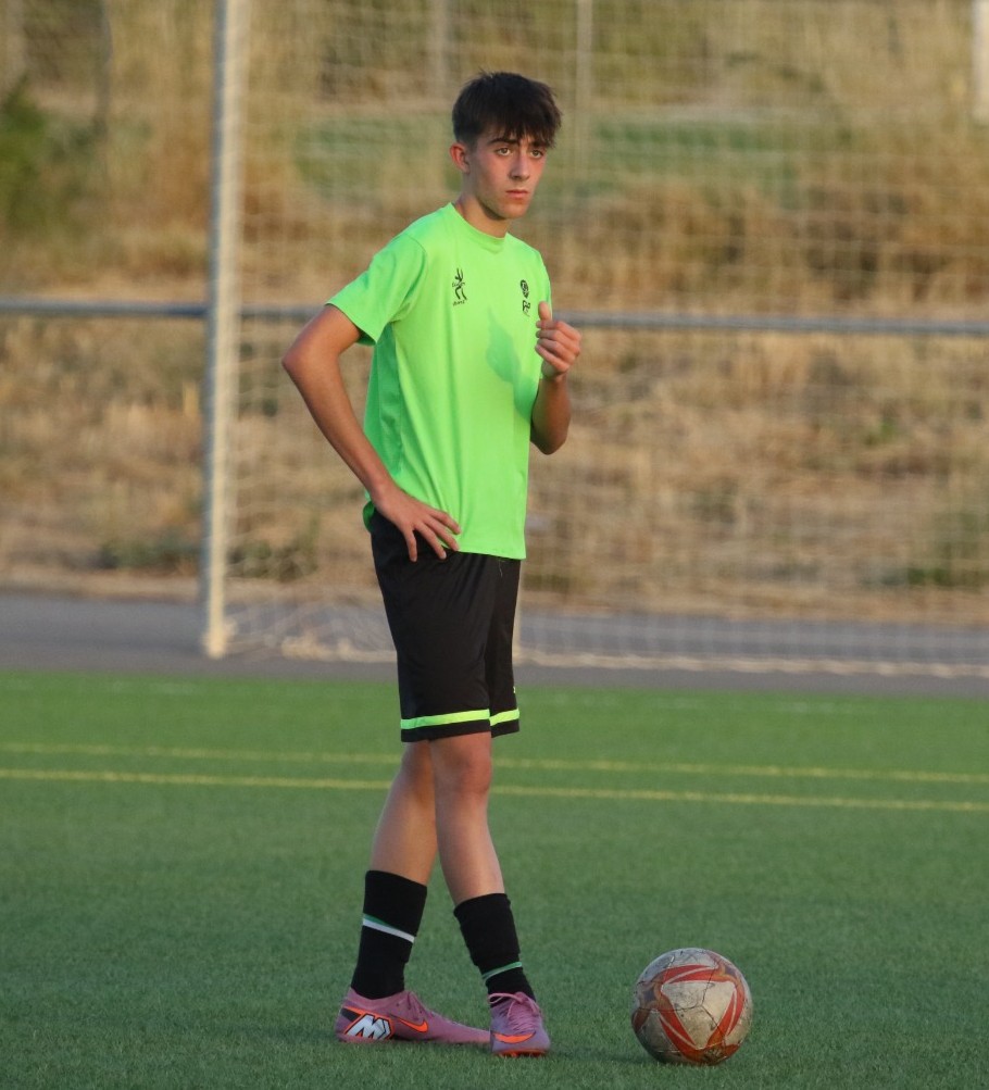 Pavo, que es su nombre de “guerra” -como se conoce en el argot futbolístico-, tiene 14 años y juega actualmente en el equipo cadete del C.D. Badajoz, luego es cadete de primer año. Con solo 10, lo fichó el citado equipo pacense y, cuando aún era alevín, se interesó por él el Sevilla C.F., donde jugó dos temporadas, la segunda ya como infantil A. De ahí regresó al C.D. Badajoz, lo que en principio podía ser un paso atrás, pero el niño siguió demostrando su valía, sus cualidades físicas impresionantes y su cada vez mayor capacidad técnica.
