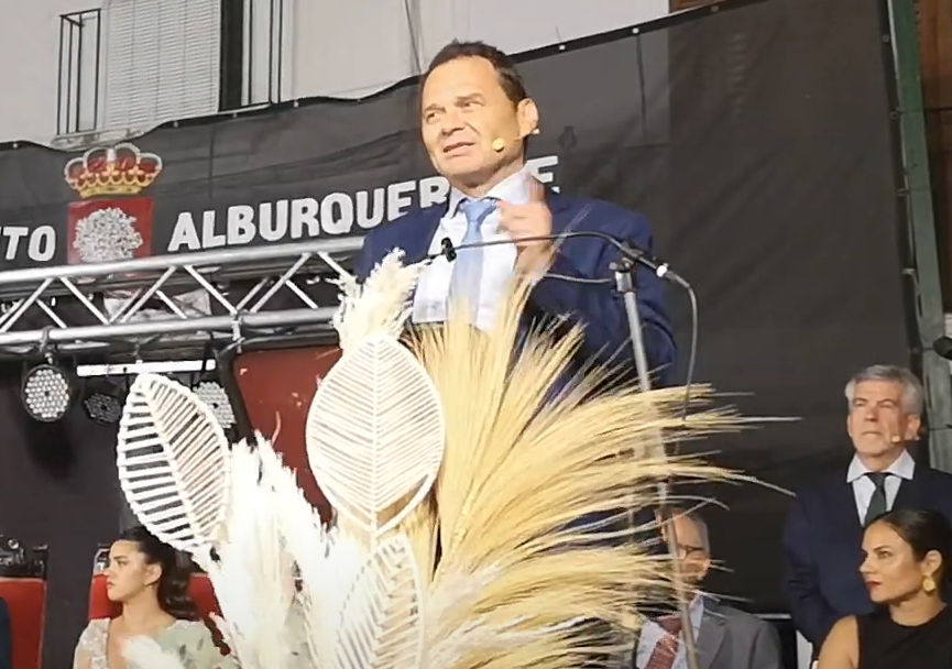 FOTO 2: Víctor Madera, en su pregón de las fiestas patronales de Alburquerque, 2023.