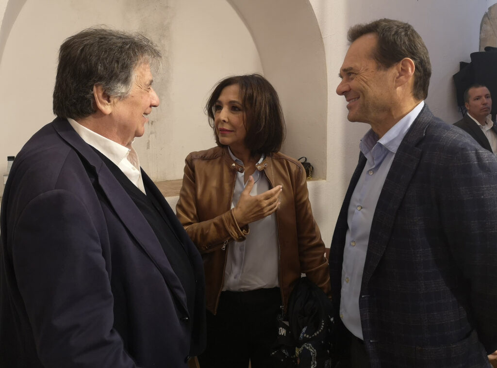 FOTO 2: Isabel Gemio, Luis Landero y Víctor Madera, charlando de manera distendida minutos antes de empezar el acto, en el interior de la iglesia de Santa María la Mayor, en el castillo.