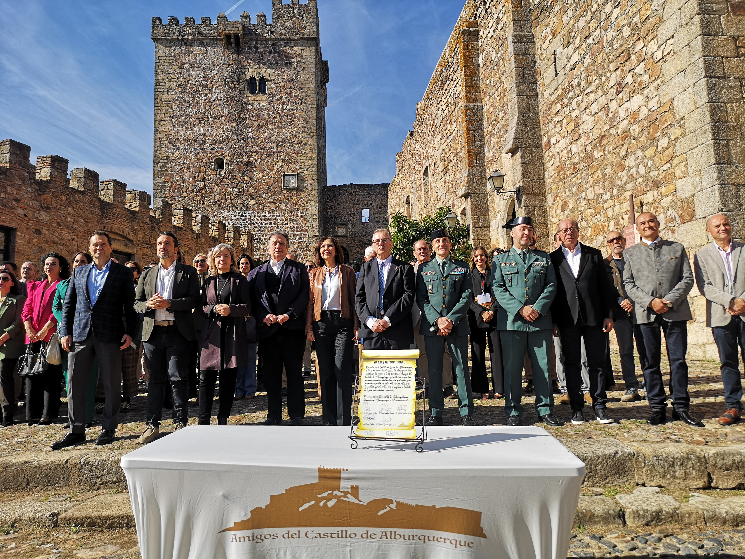 PORTADA: Firmantes del acta de constitución de Amigos del Castillo de Alburquerque y otras personas invitadas.