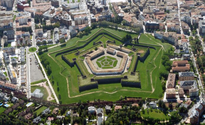 Este sería el esquema utilizado en la construcción de la ciudadela pentagonal abaluartada de Jaca y que, en la actualidad, se encuentra integrada en el propio entorno urbanístico.