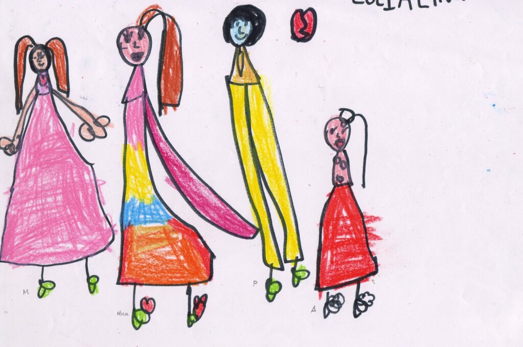 Una forma menos habitual, pero sorprendente de que niños tan pequeños acudan a ella, es la de dibujar un corazón roto en medio de sus padres, como lo hace esta niña de cinco años que ya sabe que sus padres se han separado, pero que ella los dibuja juntos. Le cuesta mucho aceptar esa separación por lo que acude a este simbolismo para expresar la razón de que ya cada uno viva en un sitio distinto.
