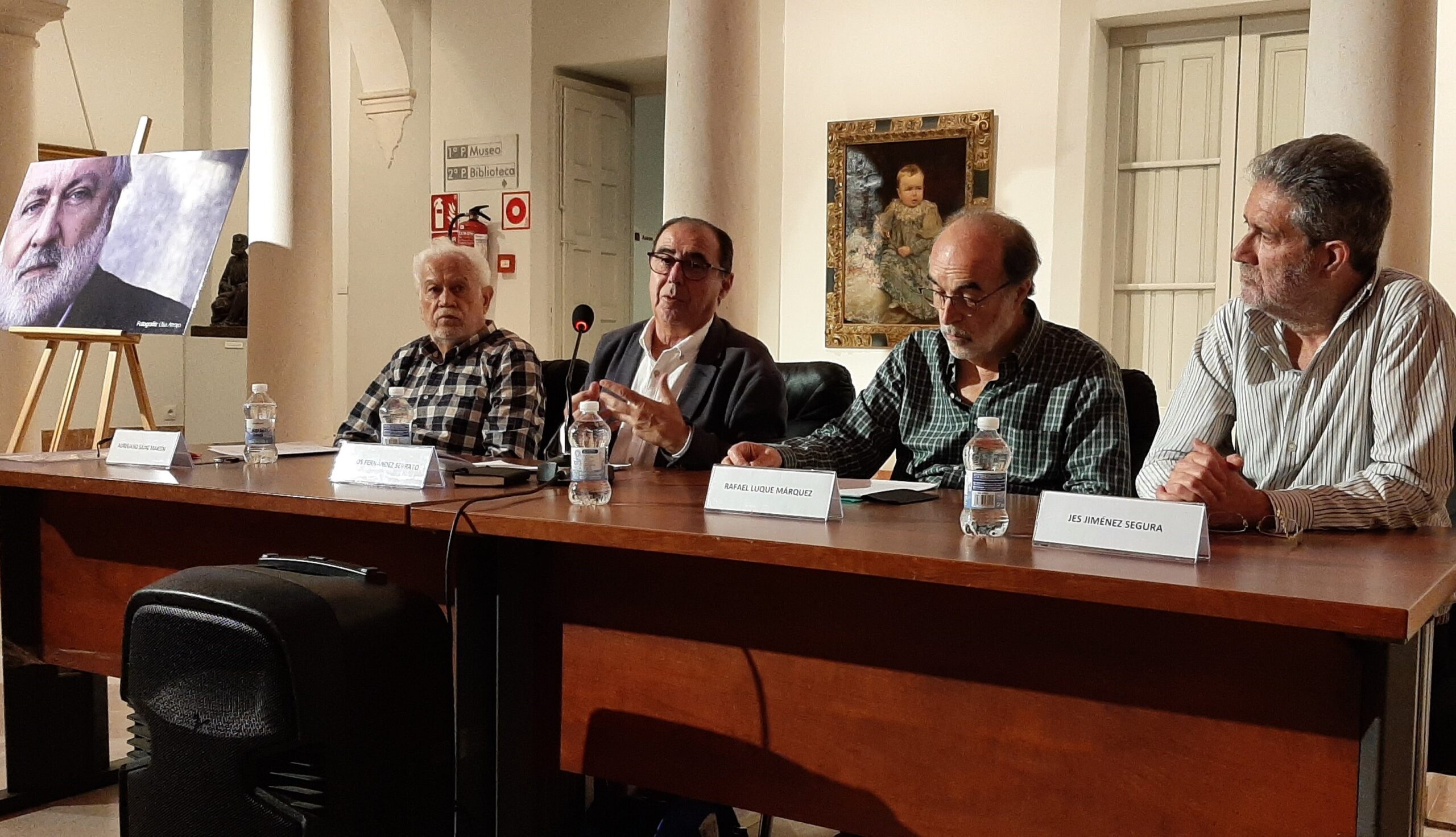 Dentro de este reconocimiento, el pasado sábado, 6 de mayo, se organizaron dos mesas redondas para hablar de sus obras literarias y de periodismo. Fui invitado a participar en la primera, junto con otros dos compañeros suyos. Ahí me encuentro en el momento que se hacía la presentación y en la que se indicaba que Antonio y yo éramos columnistas de Andalucía Digital desde su lejana fundación allá en 2010.