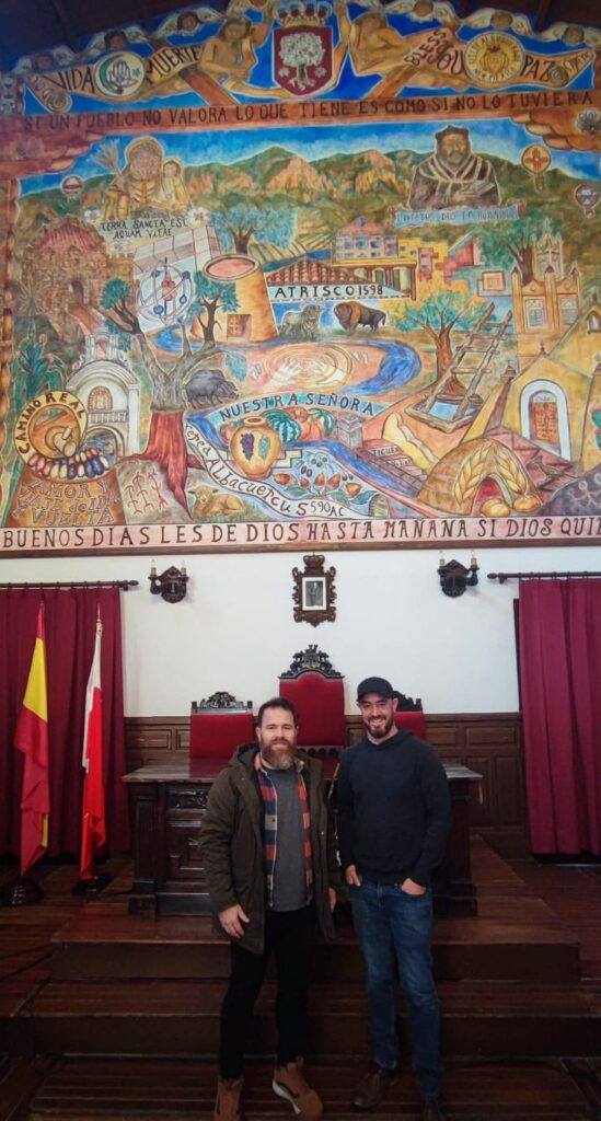 Hace escaso tiempo, Chuchi acompañó a otras personas procedentes de dicha población al consistorio para mostrarles el mural que refleja parte de la historia y costumbres de ambas localidades.