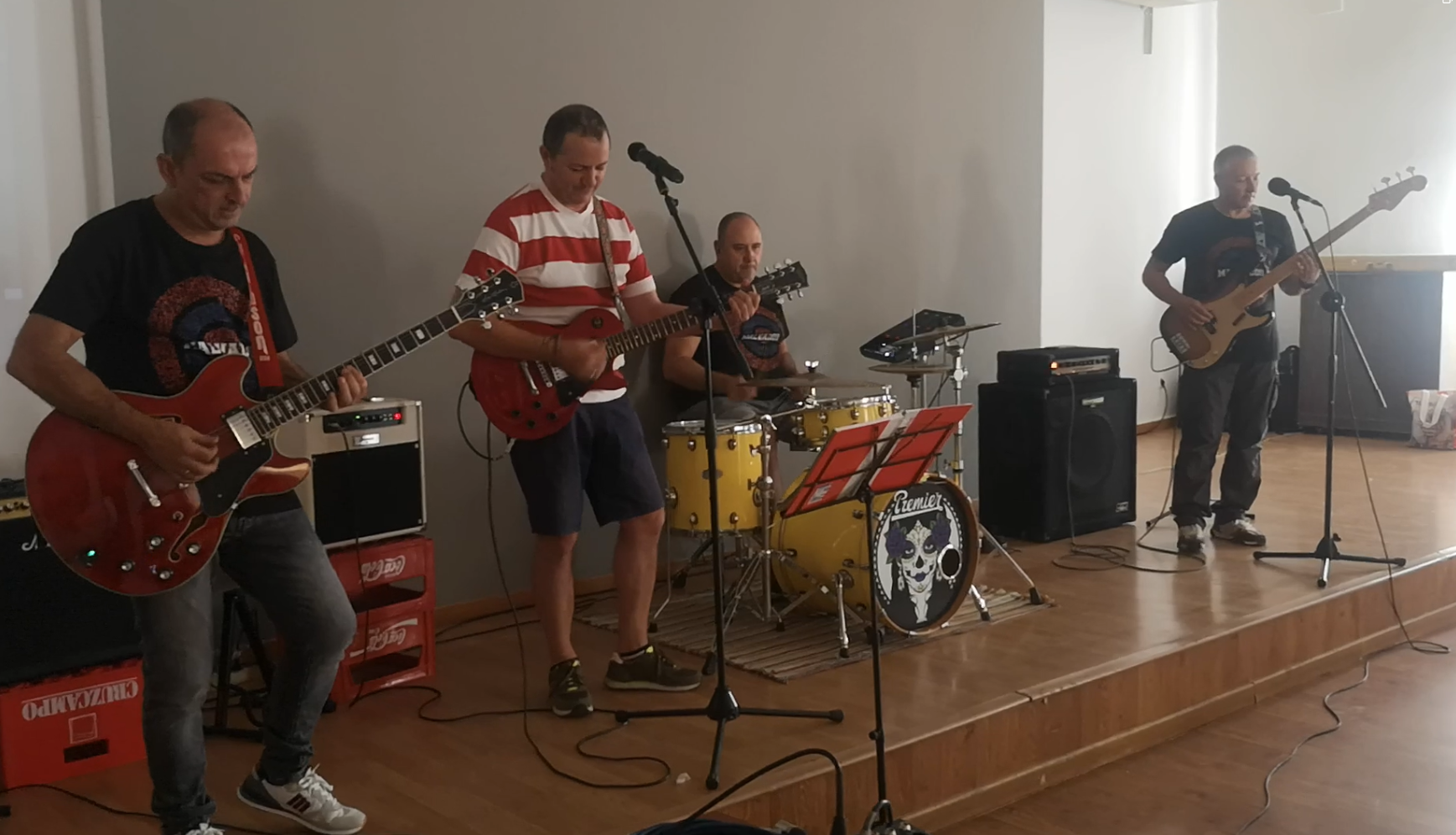 Ambos acontecimientos contaron con música, como veremos. Pero, hoy, día de la romería de Carrión, empezamos por lo último, la primera actuación de un nuevo grupo alburquerqueño, formado por reconocidos y grandes músicos: Fran Parra, Rafi Bozas, Carlos Alberto del Pozo y Pablo Bozas. Su nombre es muy sugerente: Los Malvados, y suenan muy bien, como vemos: