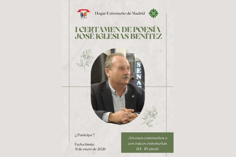 El Hogar Extremeño de Madrid ha convocado el I Certamen de Poesía José Iglesias Benítez, en homenaje a este poeta extremeño fallecido en 2020, cuando era presidente de dicha entidad.