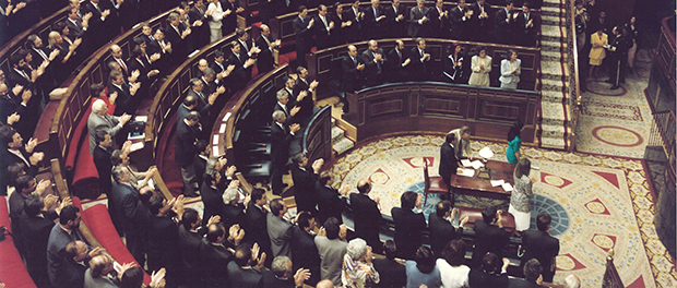 IMAGEN 2: Diputados de todos los grupos aplauden la aprobación del Pacto de Toledo.