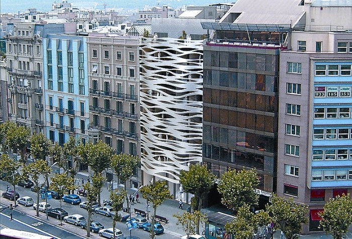Se trata de la obra que Toyo Ito realizó, en 2009, para Suites Avenue y que llevó a cabo al remodelar un antiguo edificio de oficinas para adecuarlo a un lujoso hotel de apartamentos que cuenta, incluso, con una sala de exposiciones. Lógicamente, quien contempla esta fachada entiende que no es la de un edificio de viviendas habitual, puesto que el diseño se lleva a cabo no solo para ‘dialogar’ con la arquitectura de Gaudí, sino también para proteger la intimidad de los huéspedes.